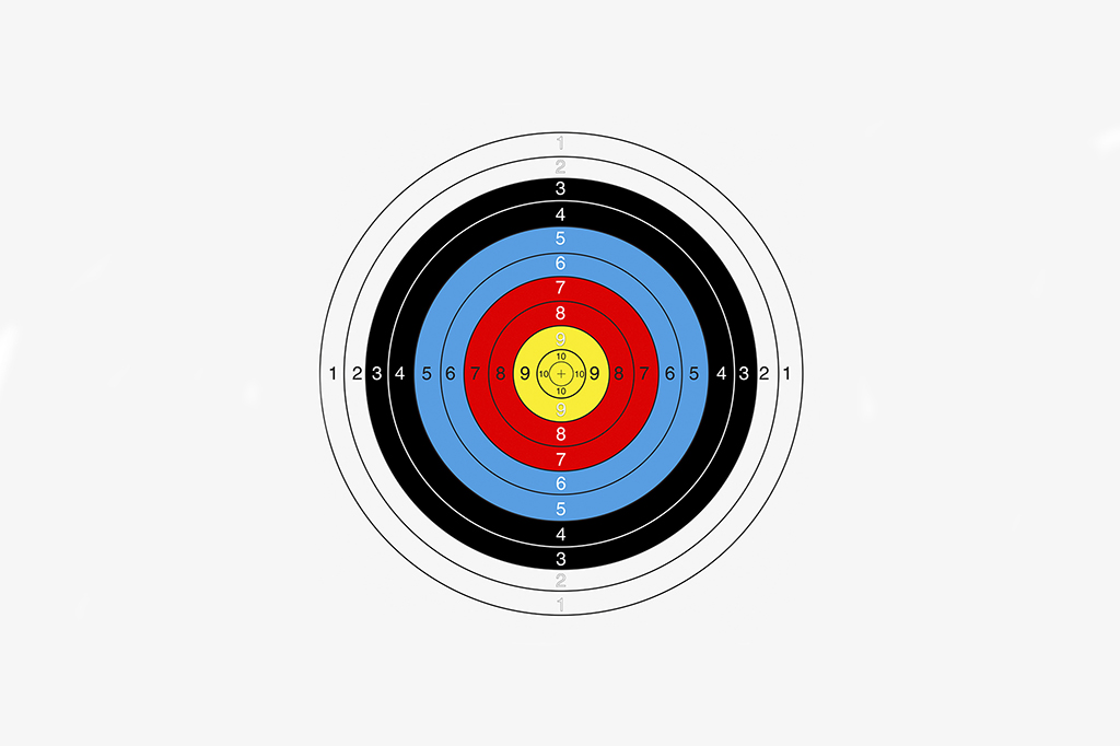 20 targets with a 10 rating. Colour printed paper yellow, red, blue, black, white.