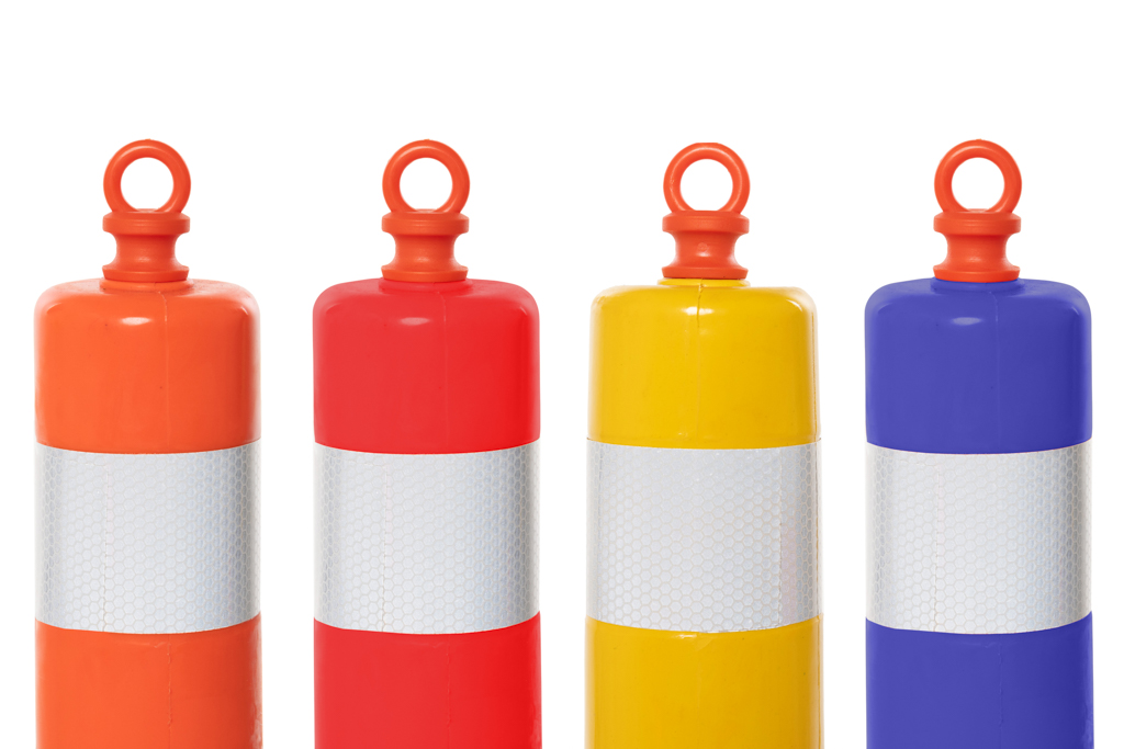 The flexible barrier post, elastic and made of plastic, has a diameter of 80 mm and straightens itself up again automatically after being driven over. It is ideal for entrances and exits, car parks or as a lane divider as well as for narrow access routes and is available in various colours. The compliance of the barrier post protects vehicles from damage.