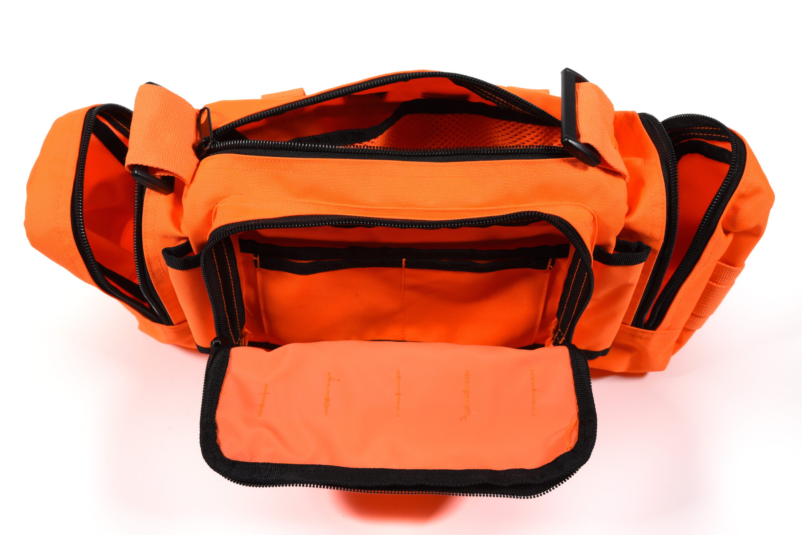 This shoulder bag in orange can be converted into a belt bag in no time. The bag is equipped with the “Molle loop system” and push buttons at the back. The shoulder strap is equipped with a click quick release fastener and can be attached to the bag on the device as a hip belt. The bag is equipped with a sturdy carrying handle. In addition, this shoulder bag with a zipped main compartment, two zipped side compartments and a large zipped additional compartment offers a lot of storage space. Inside, the bag is provided with various mesh pockets and slots. This sturdy bag is ideal for hunting and fishing as well as other outdoor activities. There are compatible additional bags in orange to expand this bag.