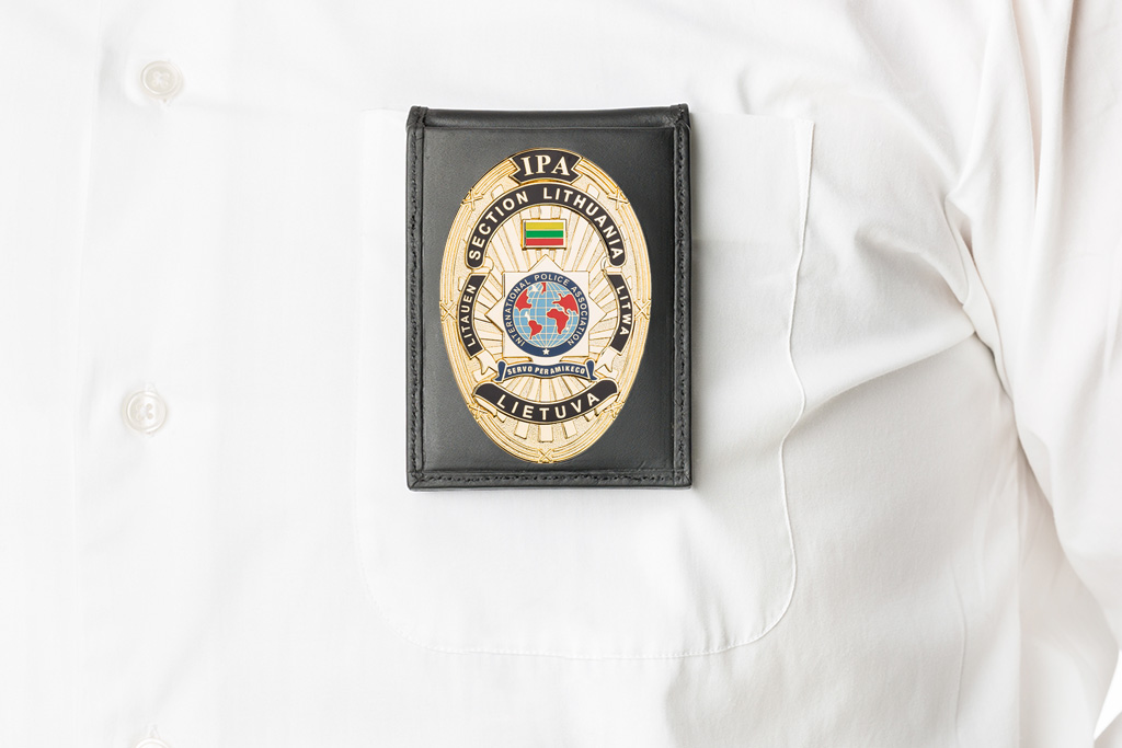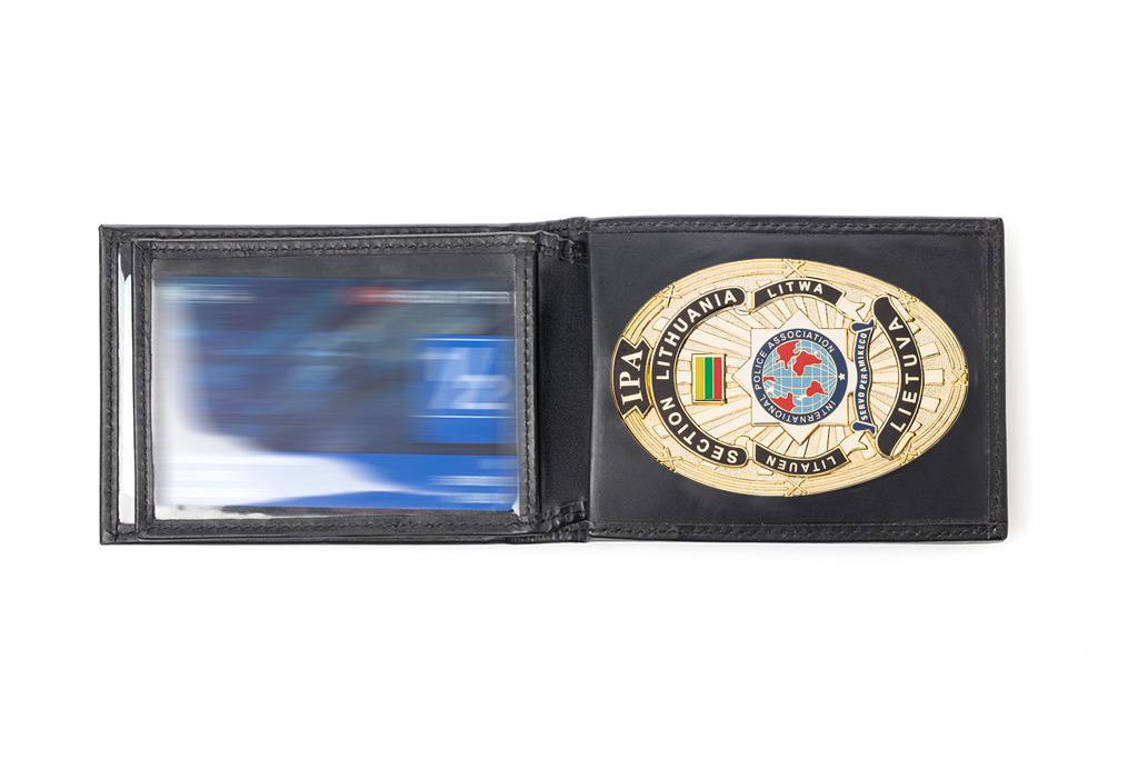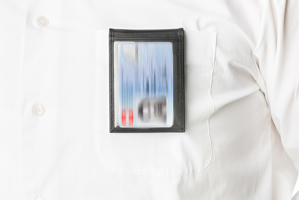 Étui en cuir de boeuf noir en format maniable avec 3 fenêtres transparentes pour des cartes de la taille d’une carte de crédit. L’étui s’ouvre par le haut. Dans cet étui, on trouve une double fenêtre à deux côtés dans la partie intérieure, qui peut être tirée rapidement et retirée. Cousu grâce à un aimant puissant (non visible) l’étui peut être fermé et porté vers l’extérieur. Ainsi, le badge ou la fenêtre se trouve du côté extérieur et est maintenu par l’aimant.